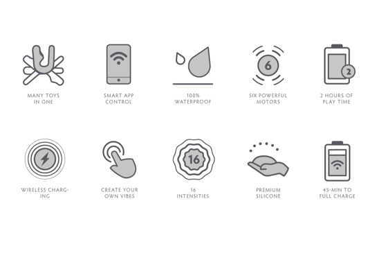 The multi award-winning Crescendo 2 is significant for couples struggling with intimacy due to Genito-pelvic pain, penetration disorder, vaginal dryness or arousal disorder. Crescendo 2’s six strategically placed motors deliver vibrations whose frequencies are optimized to reduce pain, increase arousal, and relax the pelvic floor. While simultaneously stimulating your or your partner’s vagina, vulva, labia, clitoris & perineum.